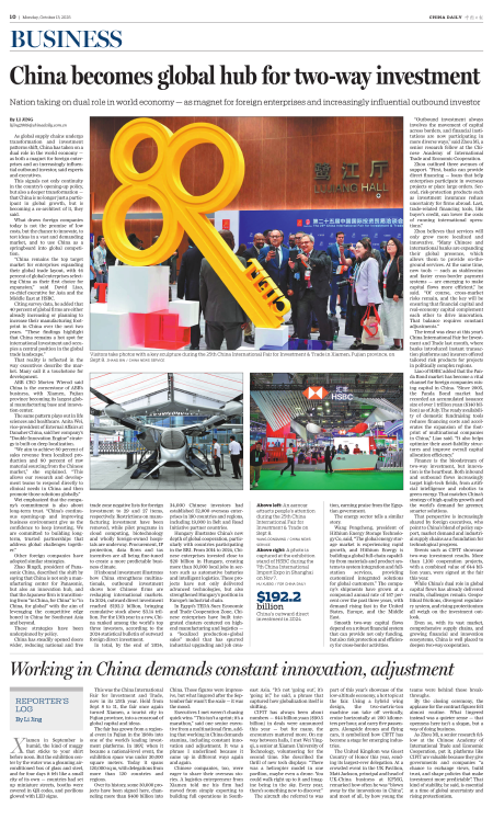 China becomes global hub for two-way investment