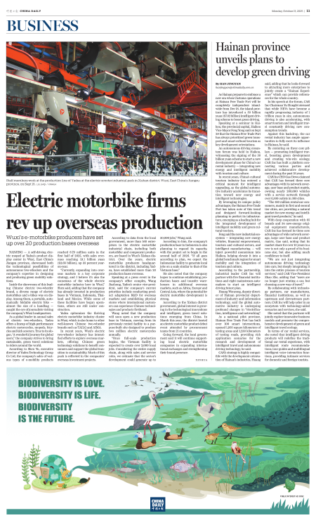 Hainan province unveils plans to develop green driving