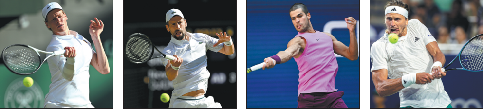 From left: Jannik Sinner, Novak Djokovic, Carlos Alcaraz and Alexander Zverev are among the superstars who will be battling it out at the Rolex Shanghai Masters in two weeks. [Photo/Xinhua]