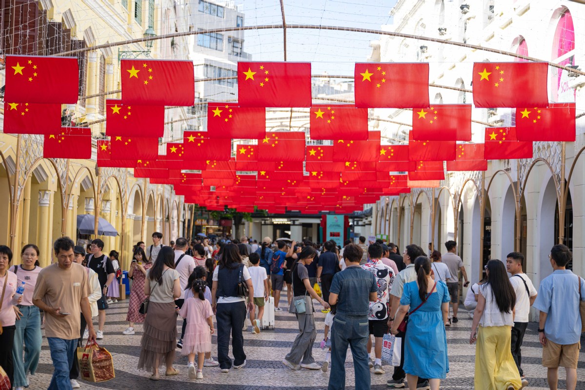 Tourists visit Senado Square in Macao, Oct 2, 2025. [Photo/Xinhua]