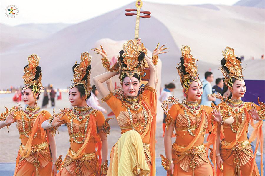 Artisans showcased hunks of minerals crushed to create the pigments used to paint the cave murals centuries ago, and wood-burned fans featuring icons like Hexi horses and wheat-straw embroidered camels.