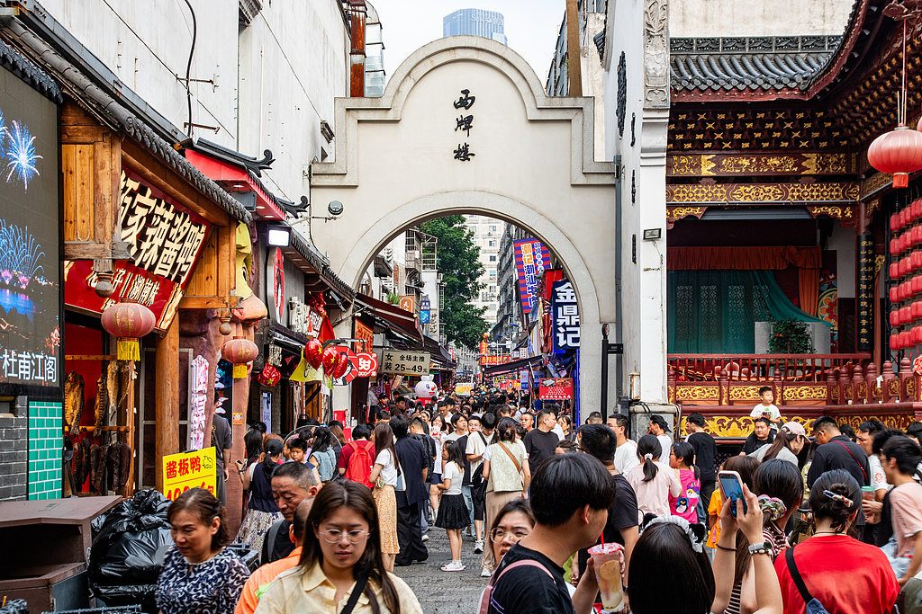 Visitors explore Taiping Street, one of the most popular sites in Changsha, Hunan province, on Oct 4, 2025. [Photo/VCG]