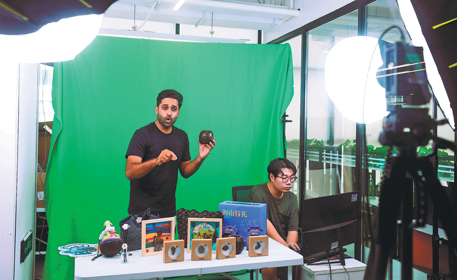 Usman Naim, a Nigerian national, opened his livestream session on a social e-commerce platform with local handicrafts and cultural products displayed behind him. He pitched Hainan-made goods to consumers in Malaysia, Indonesia and Canada.