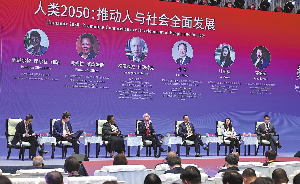 Global experts and officials exchange views on Friday during a roundtable discussion at the 2025 Tongzhou Global Development Forum in Beijing. The forum, which opened on the day and lasts through Saturday, aims to explore how to strengthen the foundation of trust for global development and build a more just, inclusive and sustainable international order. This year marks the 3rd edition of the forum, featuring a main forum, several sub-forums and a roundtable discussion. WANG JING/CHINA DAILY
