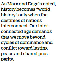 As Marx and Engels noted, history becomes "world history" only when the destinies of nations interconnect. Our interconnected age demands that we move beyond cycles of dominance and conflict toward lasting peace and shared prosperity.