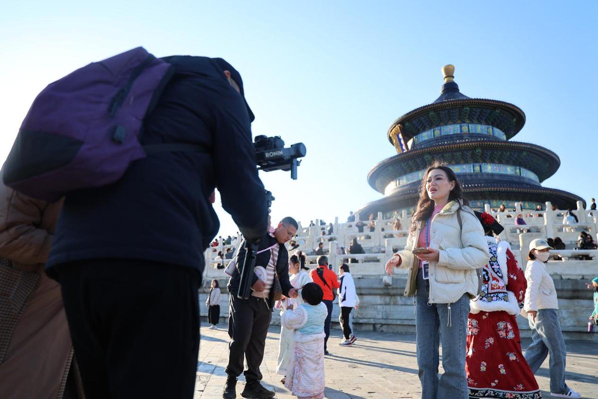 The Temple of Heaven is situated on Yongdingmen Inner Street in Dongcheng district, Beijing, on the east side outside Zhengyang Gate. It is the largest existing ancient architectural complex in the world dedicated to the worship of heaven. On Oct 19, filming teams from BRICS TV in Russia and Almaty TV in Kazakhstan visited the Temple of Heaven Park.