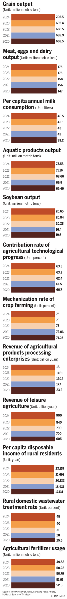 Rural incomes have continued to rise over the past five years, with the average disposable income of rural residents reaching 23,119 yuan in 2024. The income gap between urban and rural residents is narrowing, with the ratio decreasing from 2.56 yuan to 1 yuan in 2020, to 2.34 to 1 in 2024, Minister of Agriculture and Rural Affairs Han Jun said.