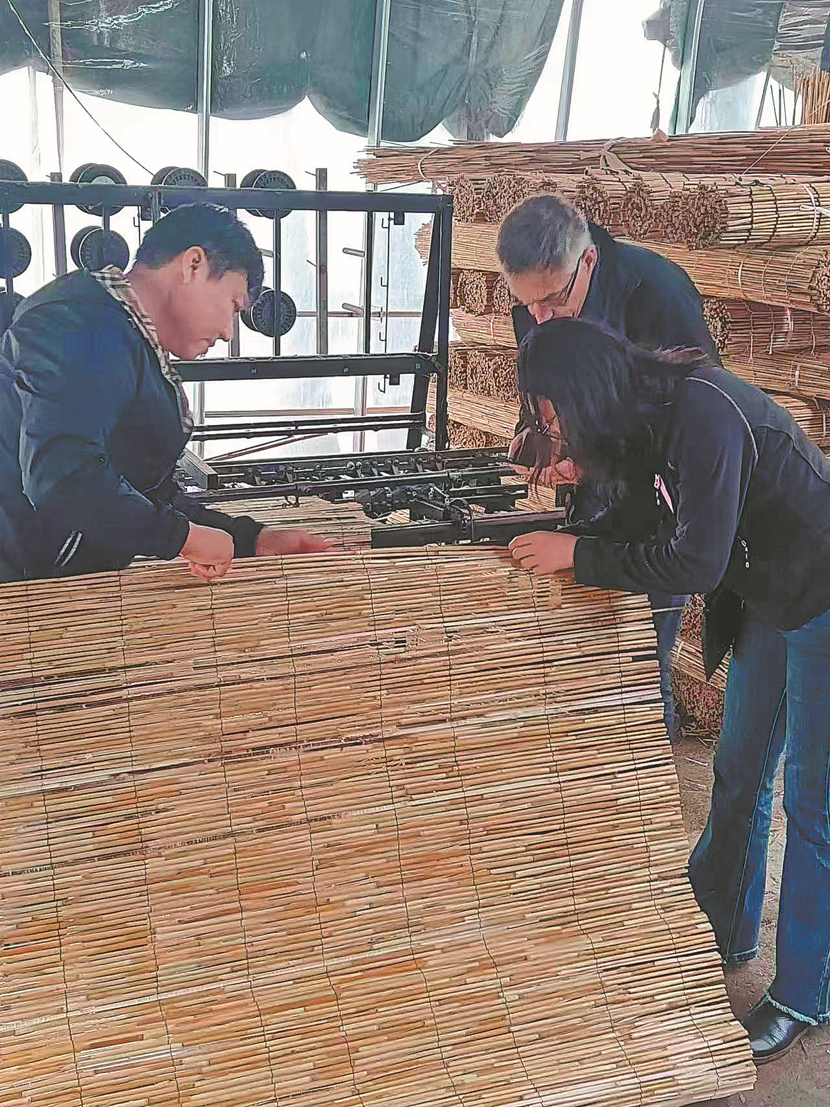 He added that the reed is an annual plant that regrows after cutting — it's a truly renewable resource. The harvested reeds are dried, sorted by thickness and length, and processed with a combination of mechanized weaving and manual finishing.