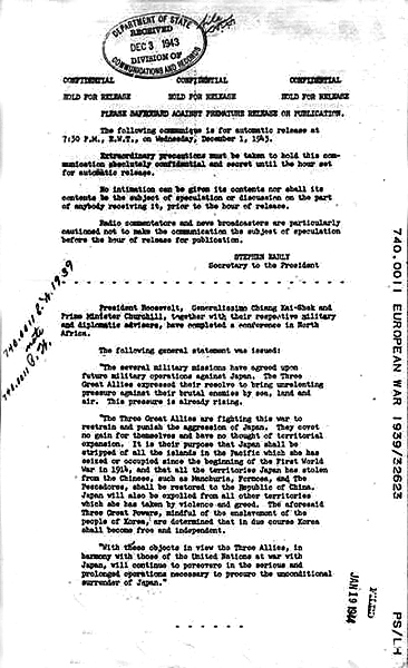 The Cairo Declaration explicitly states that territories stolen from China by Japan, such as Northeast China, Taiwan and the Penghu Islands, must be restored to China. [Photo provided to China Daily]
