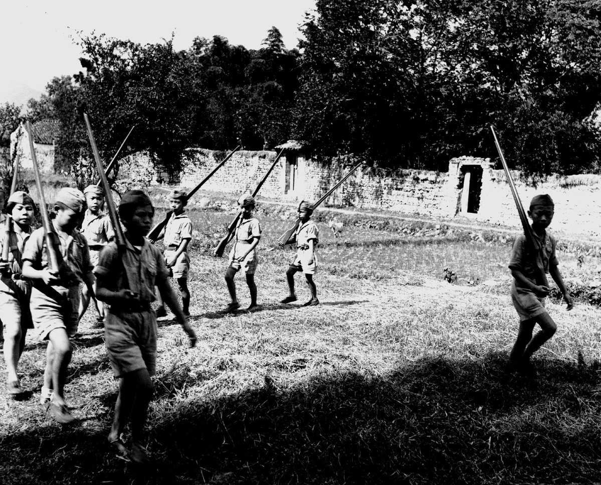 Members of the Taiwan youth league, mostly children of Taiwan volunteer corps soldiers, practice military skills. [Photo provided to China Daily]