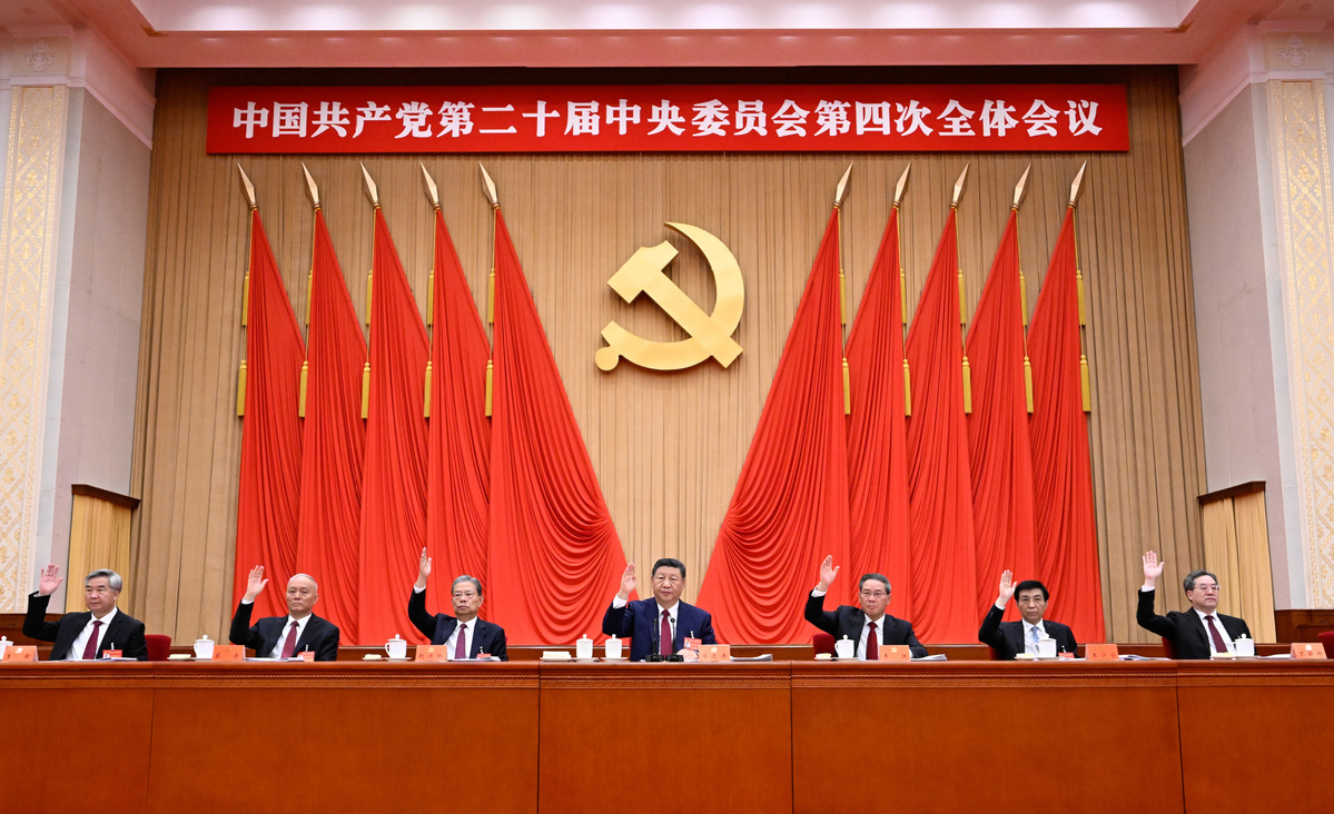 Xi Jinping, general secretary of the CPC Central Committee, and other leaders attend the fourth plenary session of the 20th CPC Central Committee. SHEN HONG/XINHUA